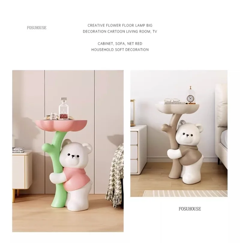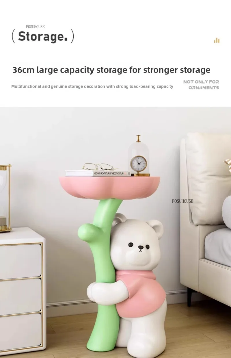 Liven up your living space with the Cartoon Bear Hug Flowers Side Table. Its charming design adds a touch of whimsy, while the sturdy construction ensures long-lasting durability. Perfect as a nightstand or end table, this unique piece offers both style and functionality