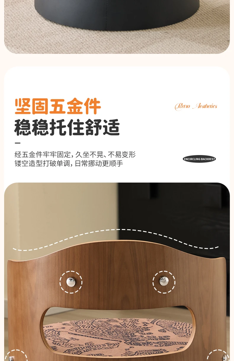 This French vintage-inspired dining chair offers timeless elegance and sturdiness thanks to its solid wood construction. The versatile design complements dining rooms, desks, or vanities, providing comfortable seating and a touch of retro charm that elevates any space
