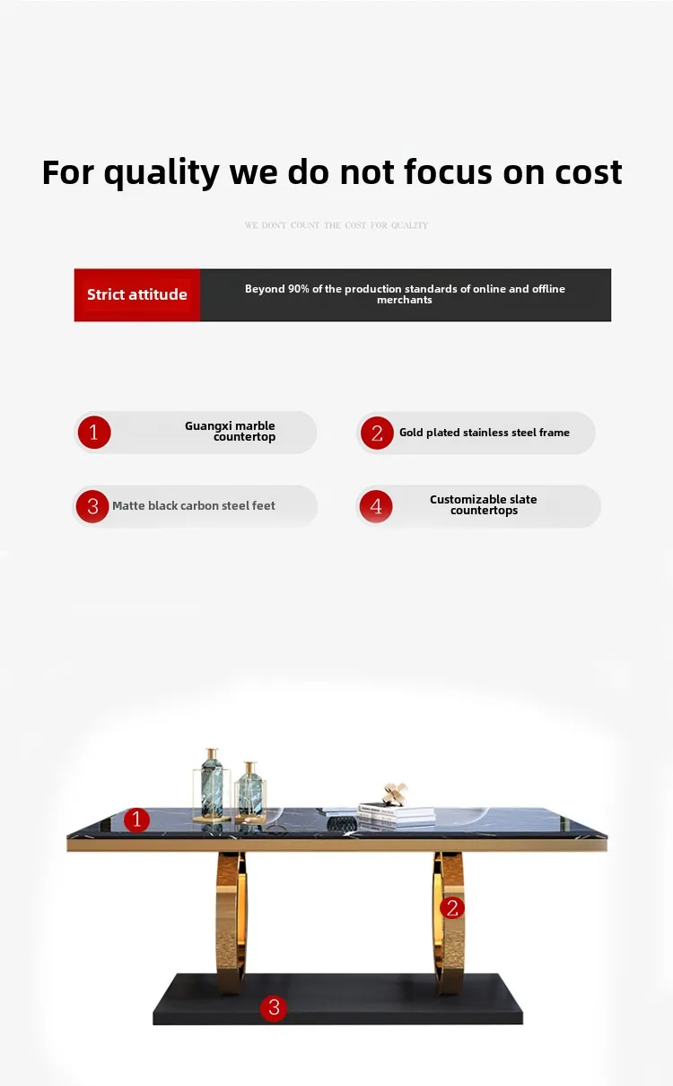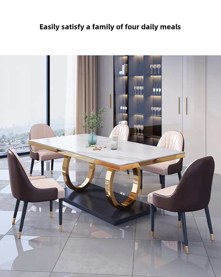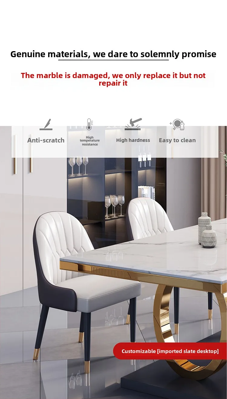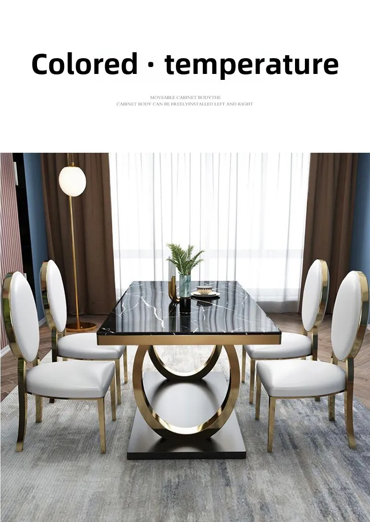 Experience luxurious dining in even the smallest of spaces with our Marble Dining Table and Chair Combination. The sleek stainless steel and rock slab design exudes modern elegance, while its compact footprint maximizes space without compromising style or durability