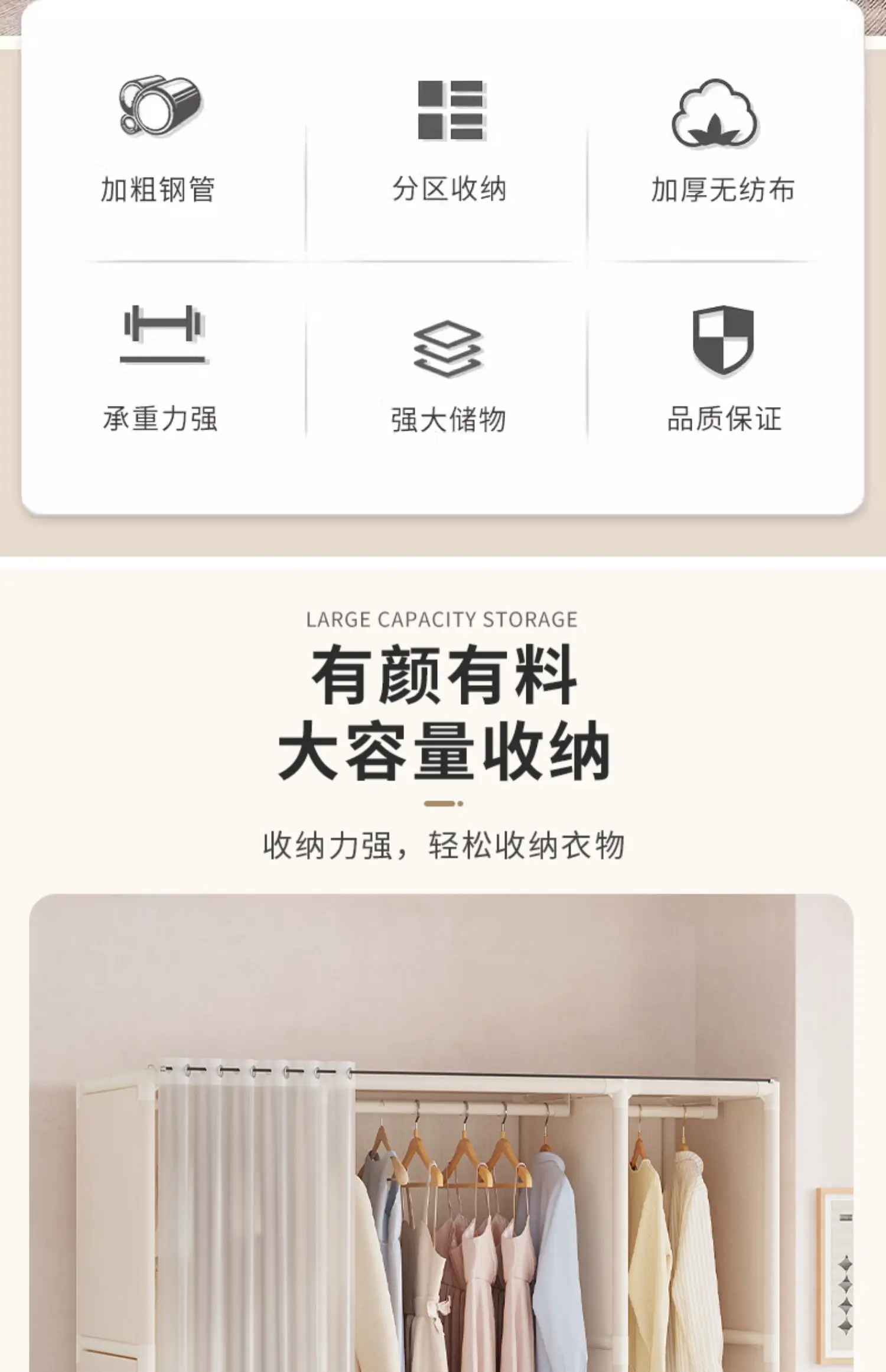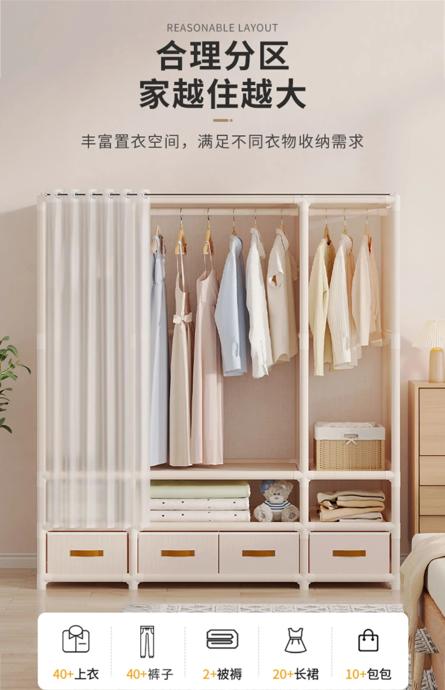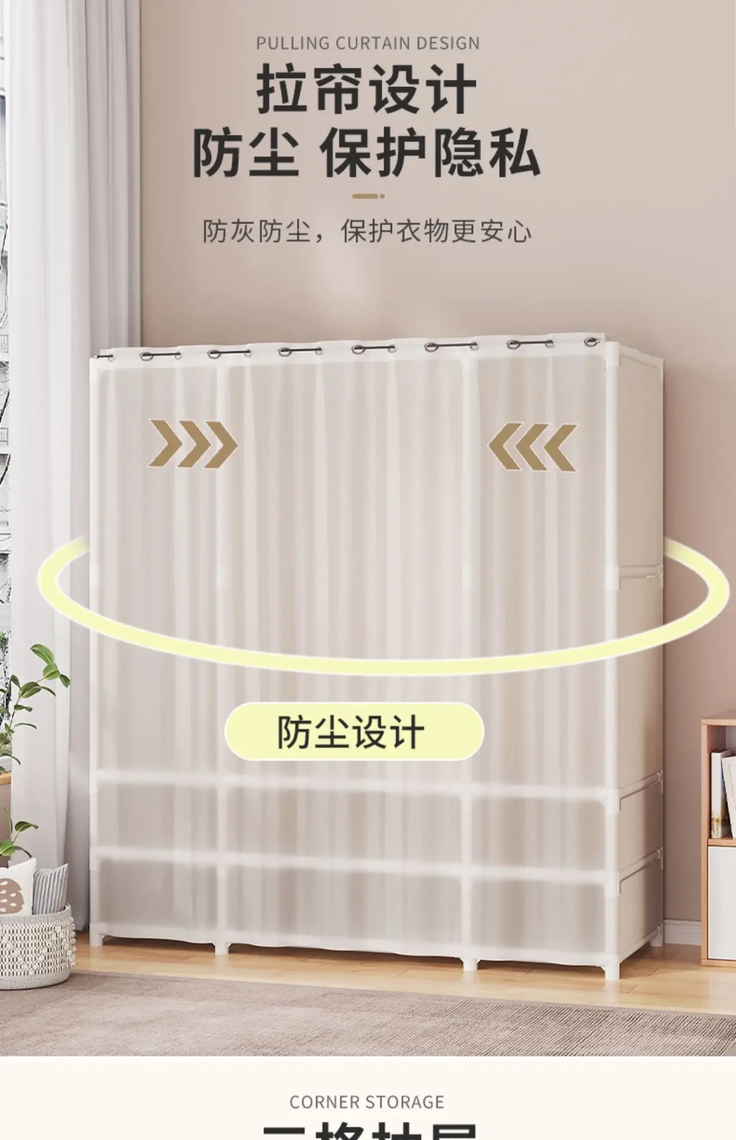 This simple, sturdy wardrobe offers a dust-proof design and multi-functional storage, perfect for any bedroom. Its durable construction ensures long-lasting use, while easy assembly saves you time and effort. Enjoy a clutter-free space with this practical and stylish addition