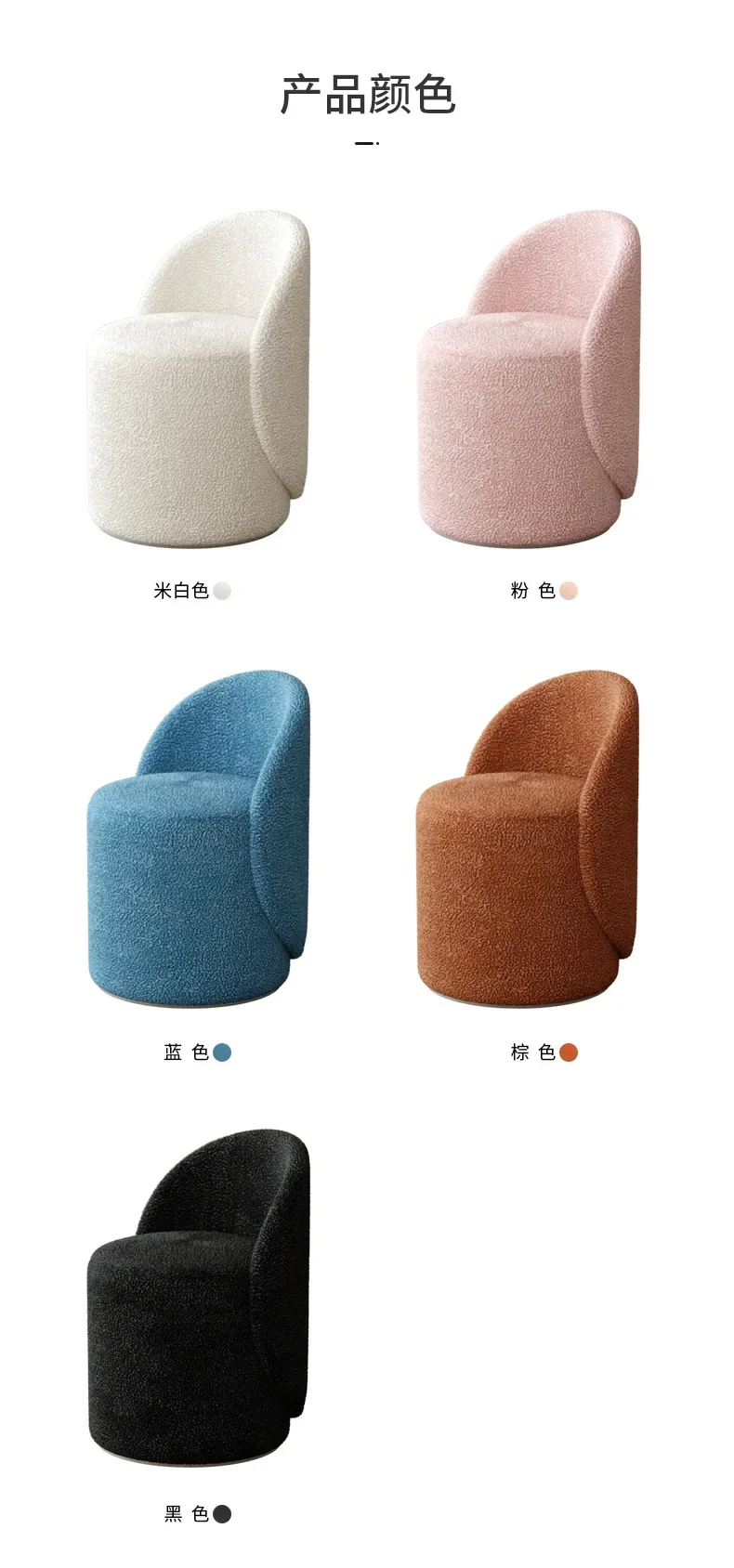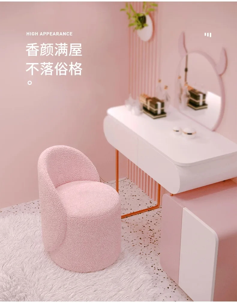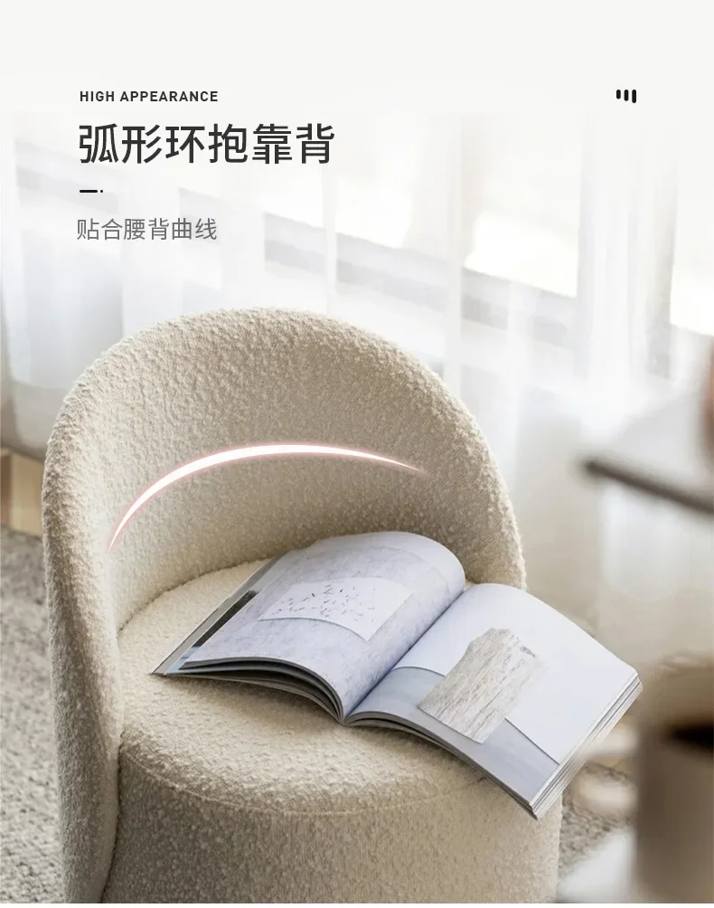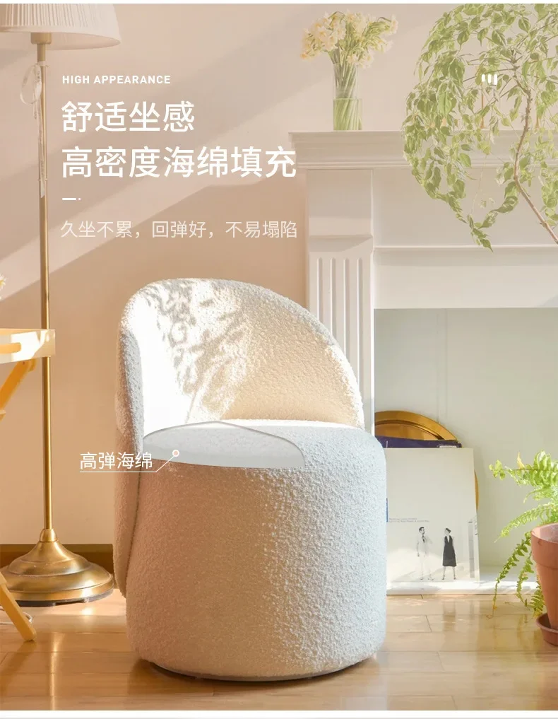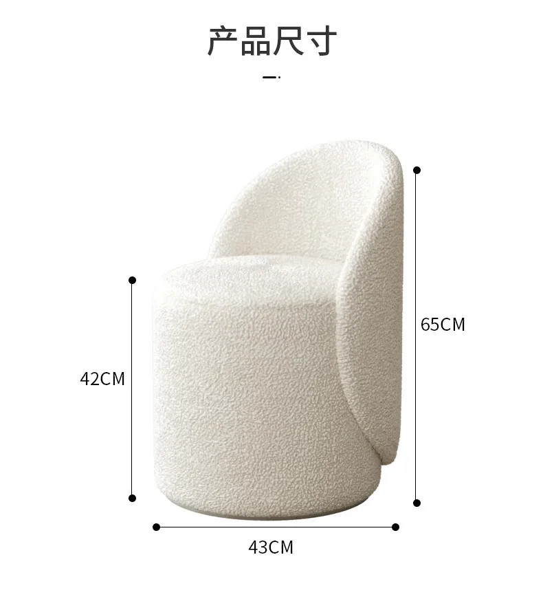 Indulge in the plush comfort of our Nordic Makeup Stool. Its cashmere lamb backrest gently cradles your back, providing luxurious support while you prepare for your day. The elegant design elevates your bedroom decor, adding a touch of Nordic sophistication